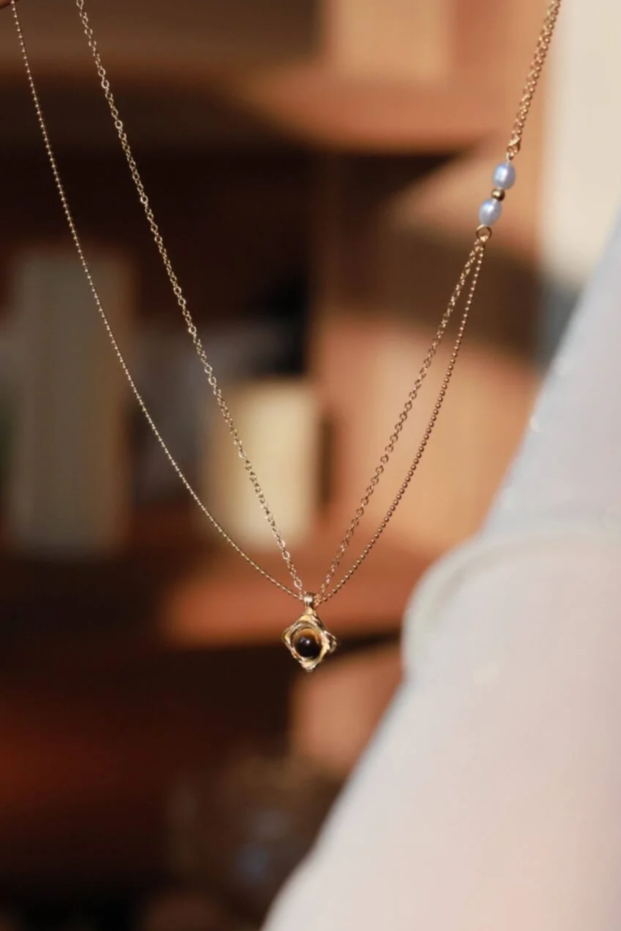 - Tiger’s Eye & Pearl Double-Layered Necklace: