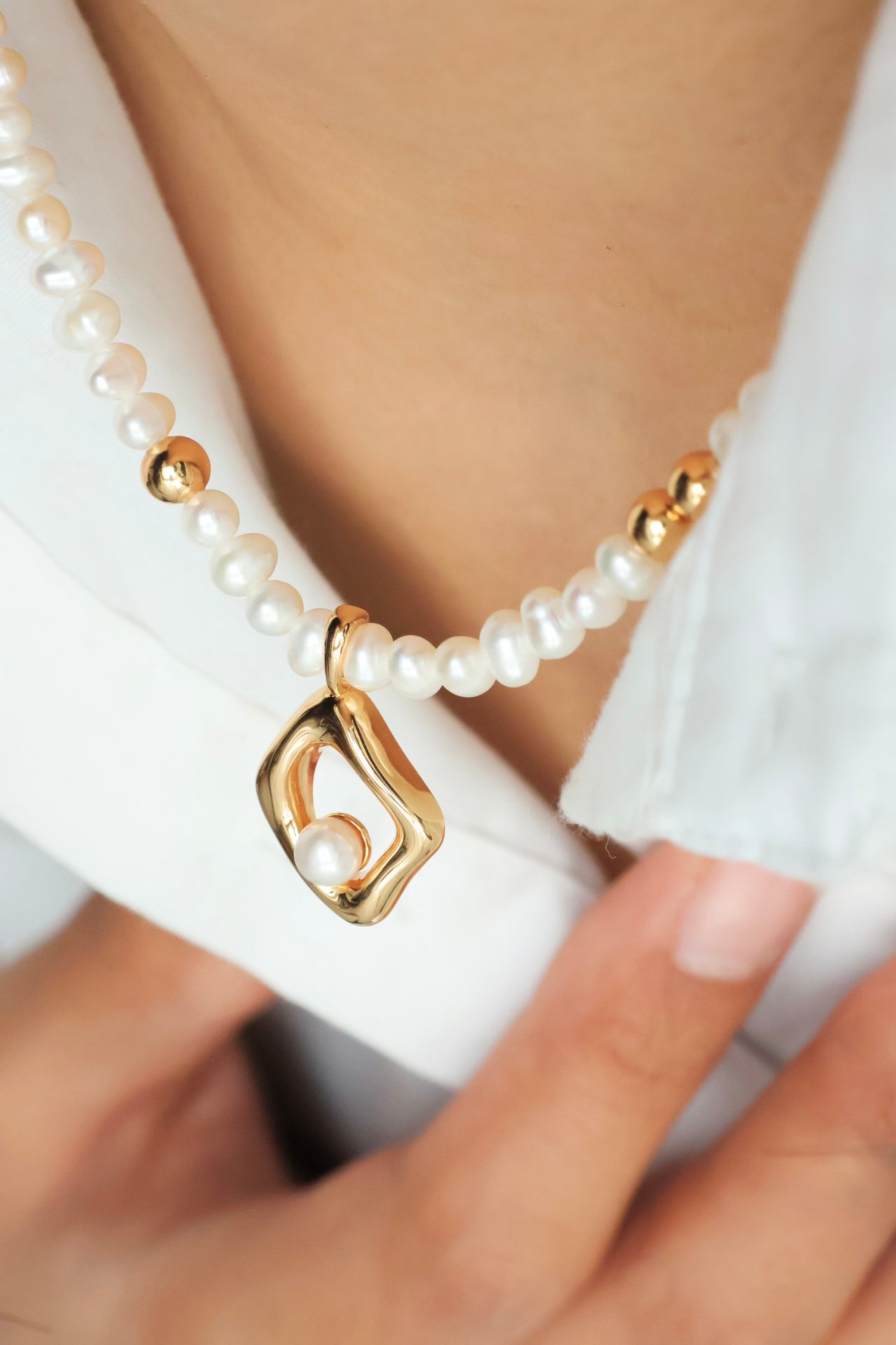 Modern Geometry – Pearl Necklace🎨