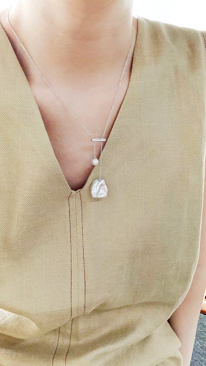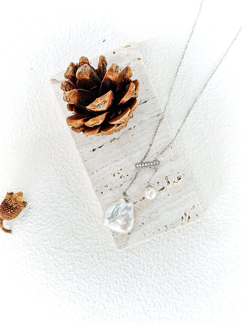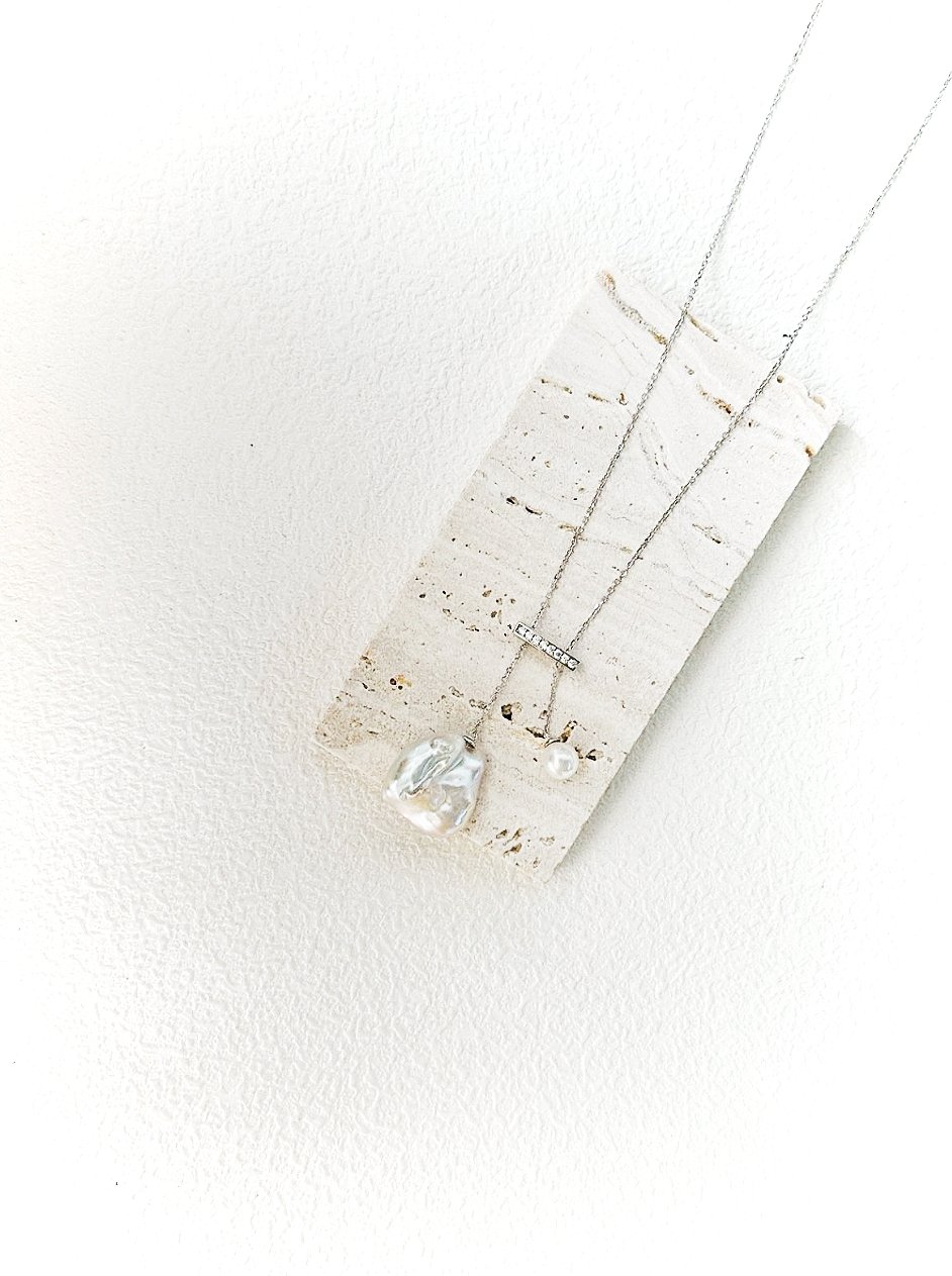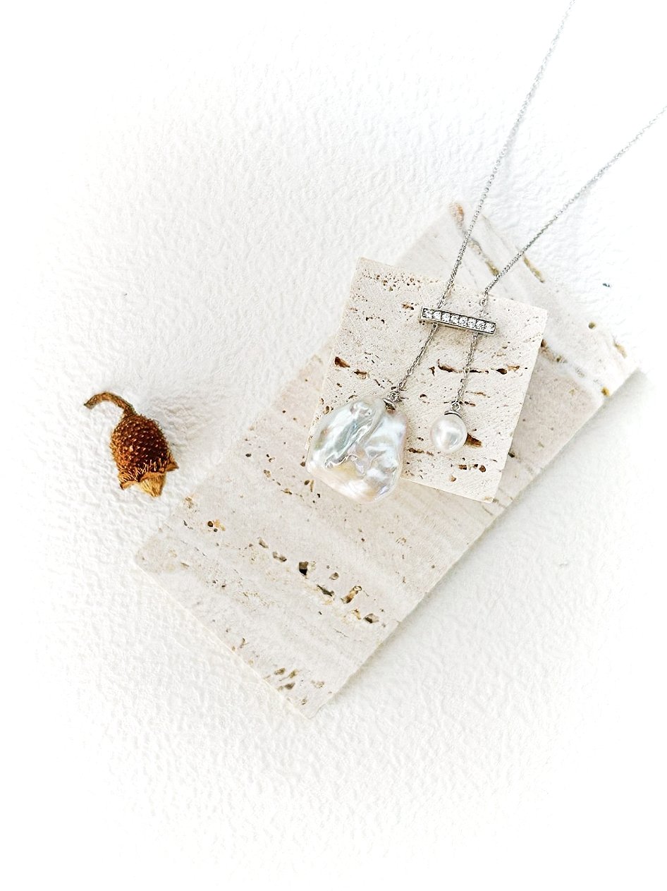 Balance Beam Pearl Pendant Necklace