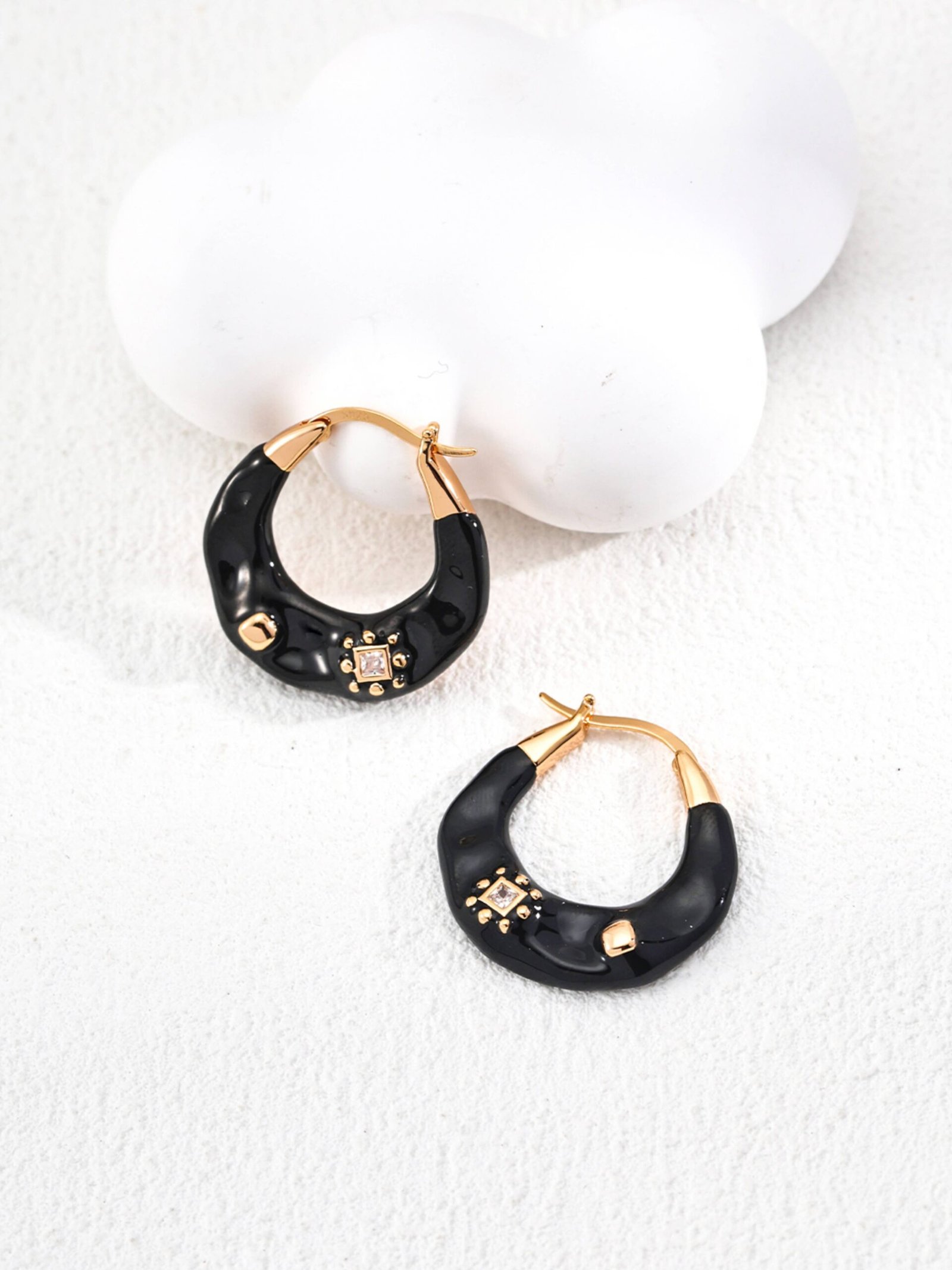 🖤🌟Noir Chic — Black Enamel & Zircon Earrings