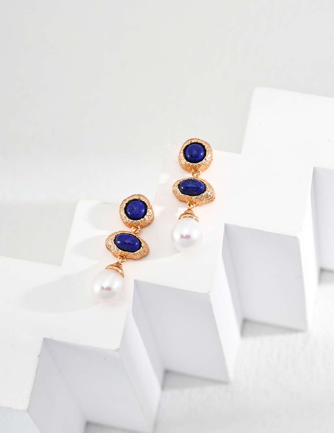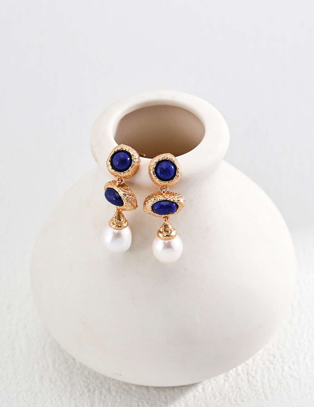 Material: 925 Sterling Silver (Antique Gold Plating) / Lapis Lazuli / Natural Pearl