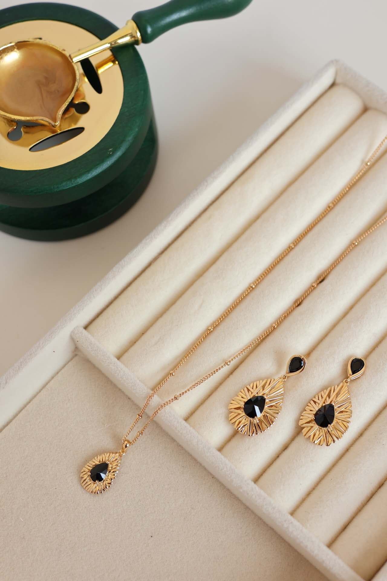 Whether for everyday wear or a special occasion, the set brings a touch of individuality and warmth to your jewelry collection.