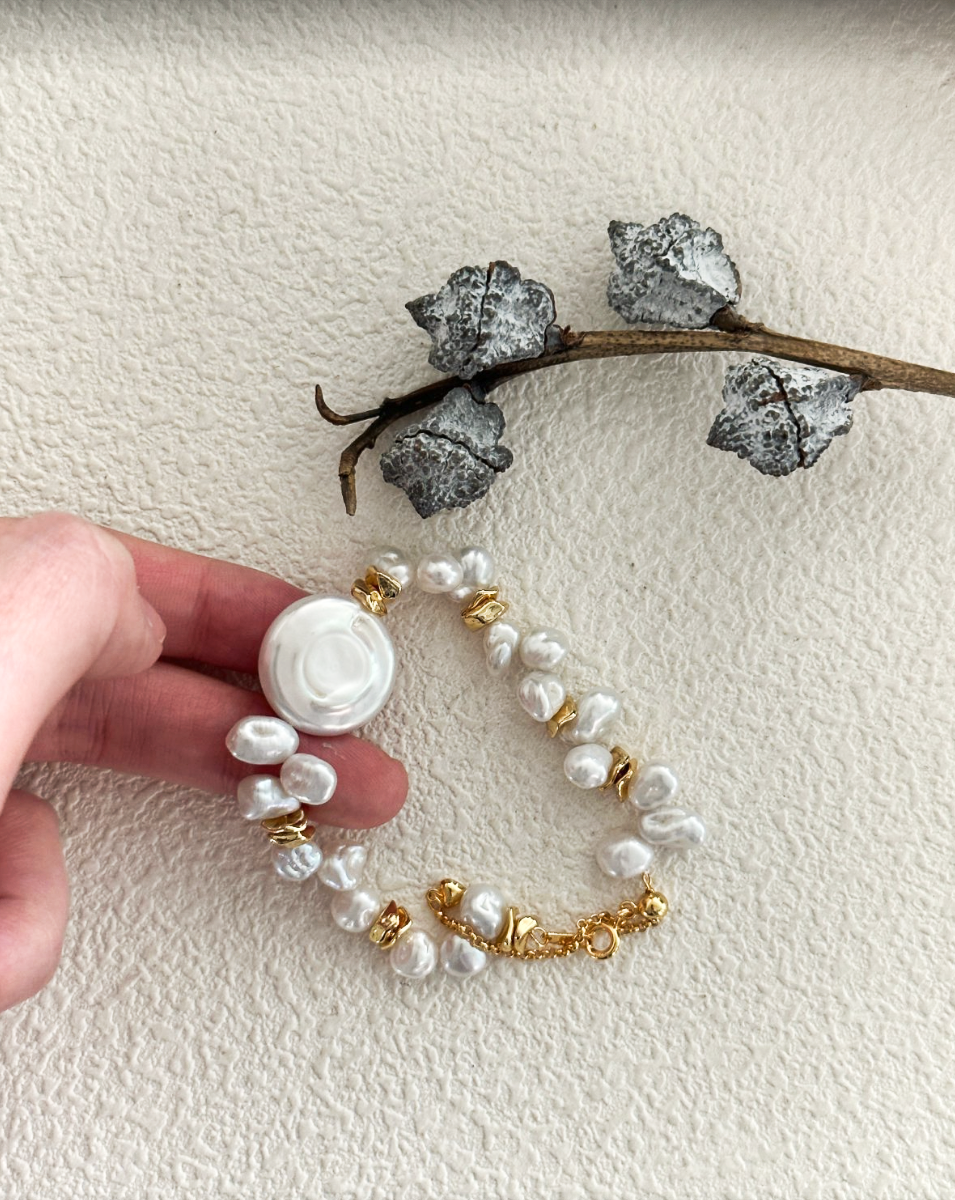 Want single purchase? Please refer to the link: https://ttwoluminawhimsy.ca/products/golden-crest-keshi-baroque-pearl-bracelet/