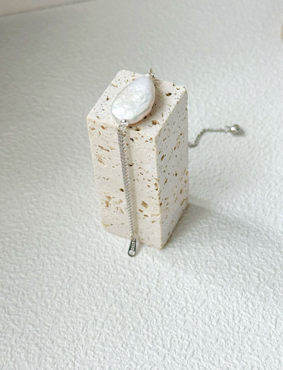 As if caught in a moment of stillness, the single teardrop pearl on this bracelet rests quietly, radiating inner calm. The Luminous Grand Dewdrop Bracelet is crafted from high-luster pearl and sterling silver, offering a delicate charm that flows effortlessly with your everyday grace.