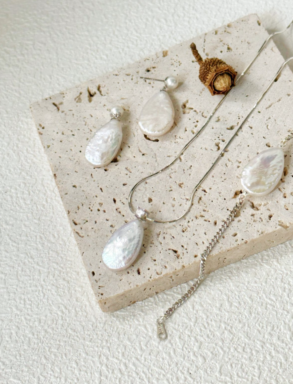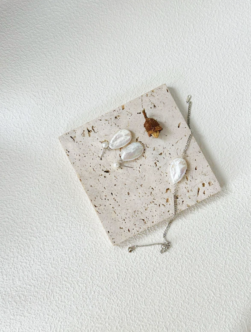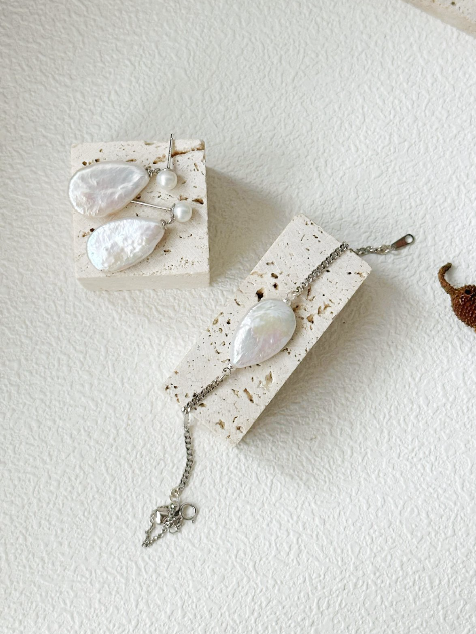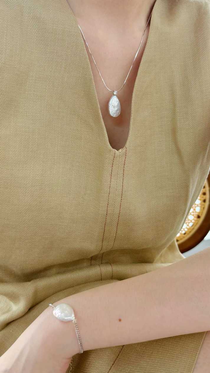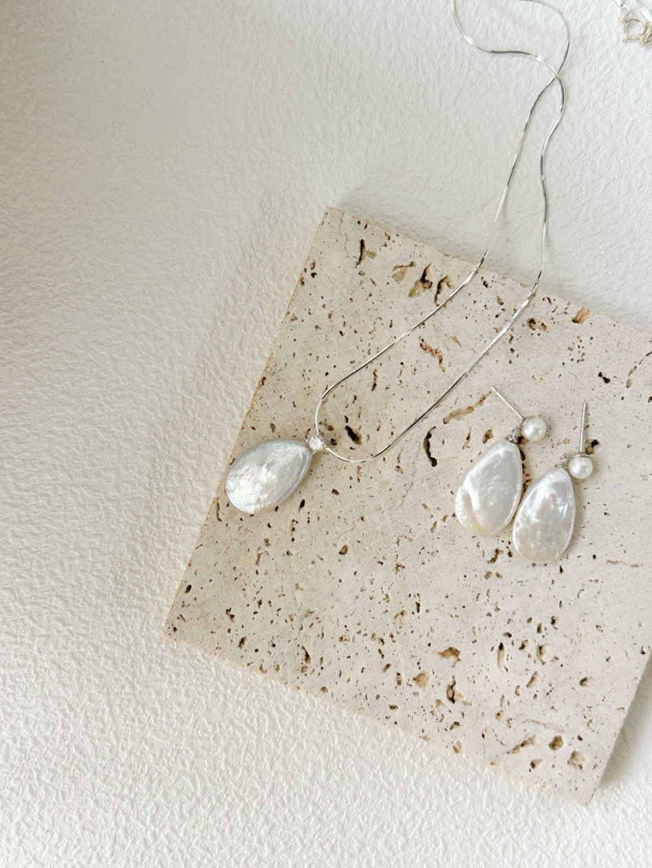 Light as a breath, soft as a morning mist — the Grand Luminous Dewdrop Set gathers all three pieces of this poetic collection into one harmonious ensemble. With a necklace, earrings, and bracelet each centered on a single teardrop pearl, this set speaks to purity, balance, and beauty in every detail.