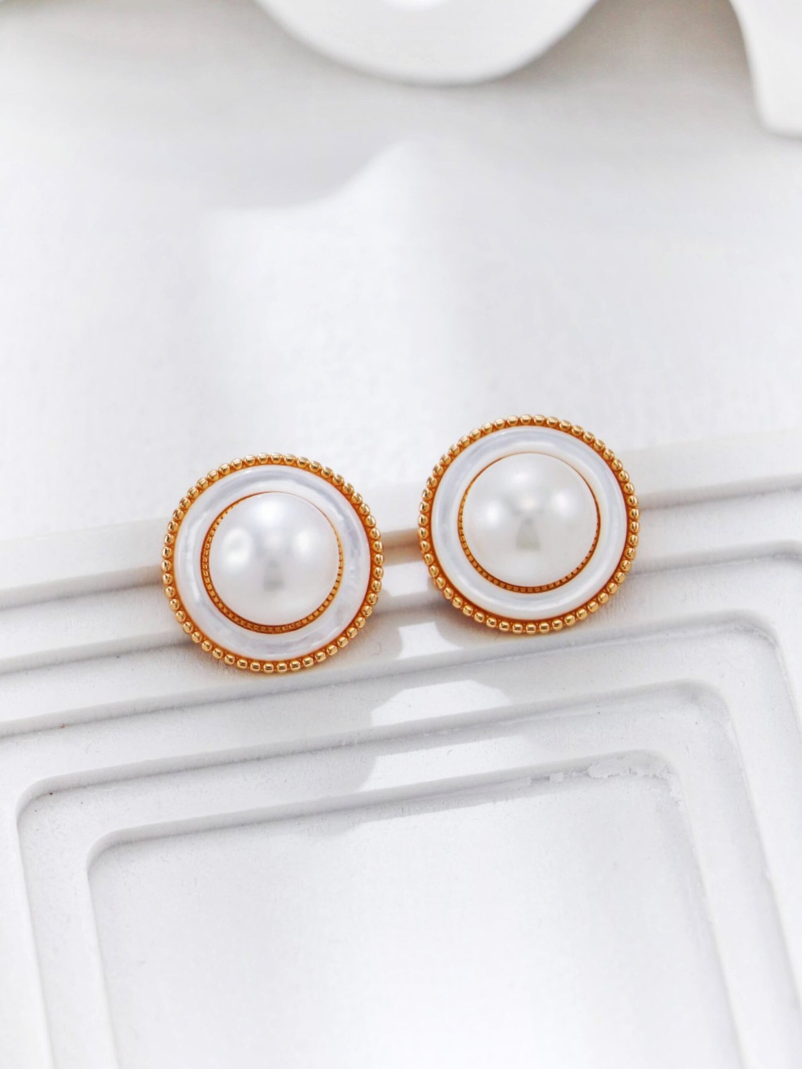 Elevate your elegance with our Moonlit Grace earrings, crafted in S925 sterling silver with vintage gold plating, luminous pearls, and radiant white mother-of-pearl. A timeless ode to classic femininity.