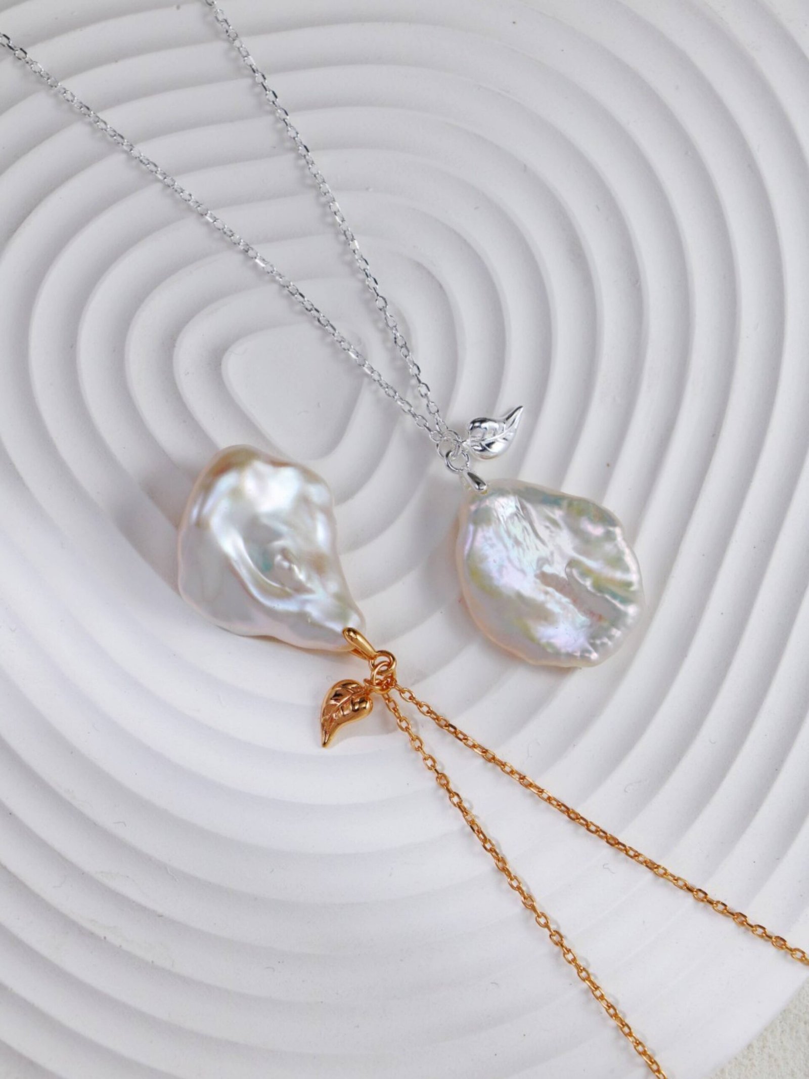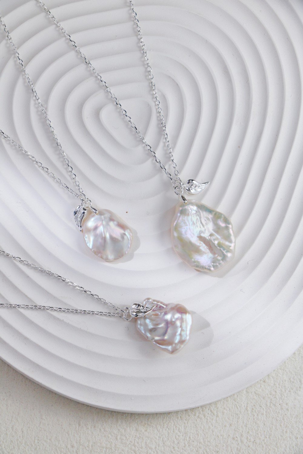 Every petal tells a different story, just as every moment of beauty is fleeting and unique. This delicate necklace features a petal pearl charm, with each piece possessing its own distinct shape—a gentle reminder that true elegance is found in imperfection. Available in both gold and silver chain, this design is a tribute to natural grace.
