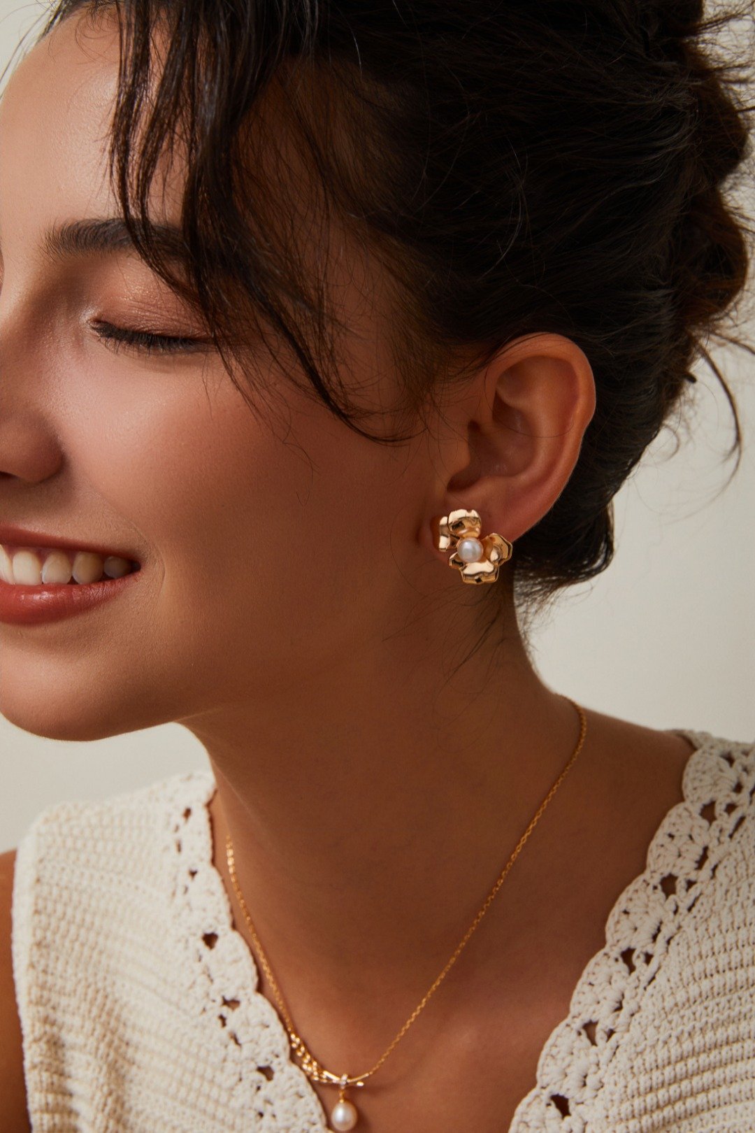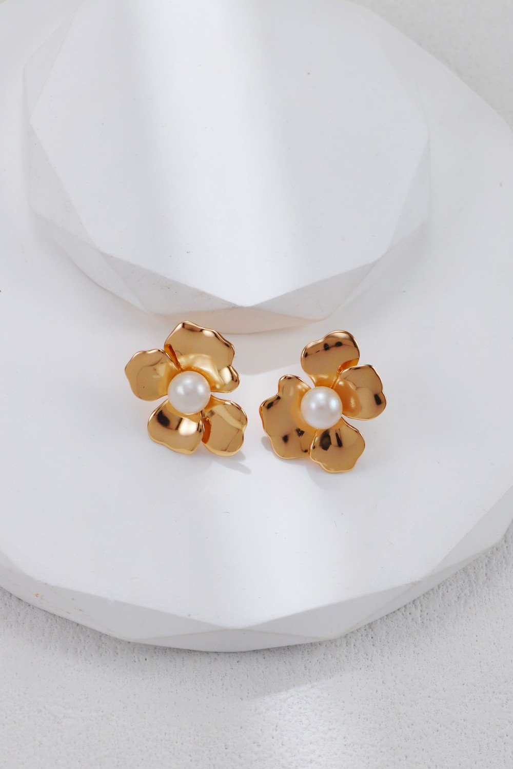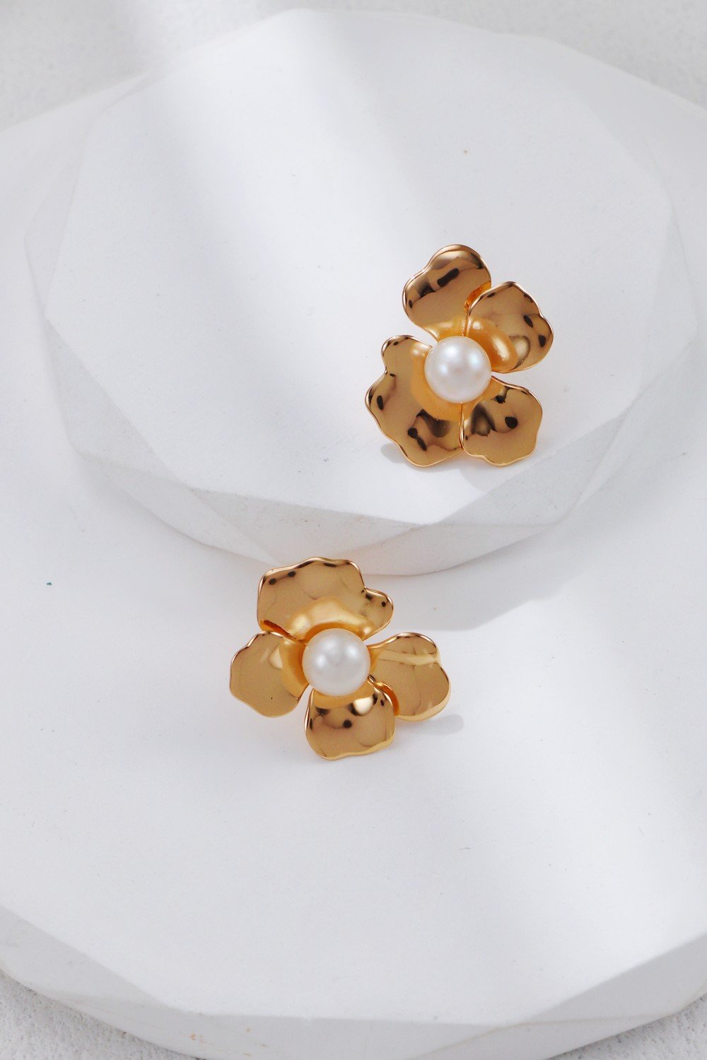 🖍 Color: Glowing gold with soft pearl center; Mirror white gold silver tone with pearl center