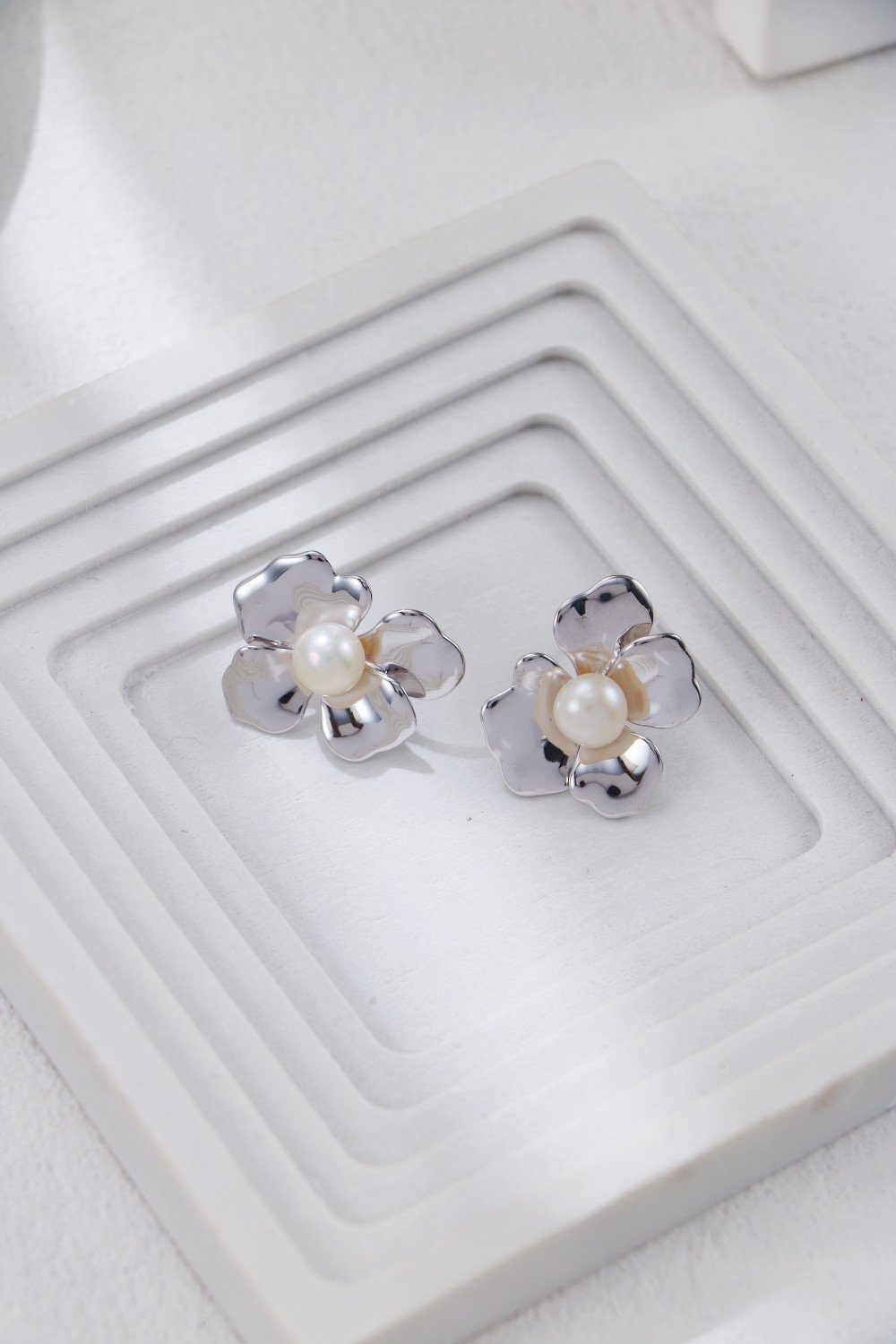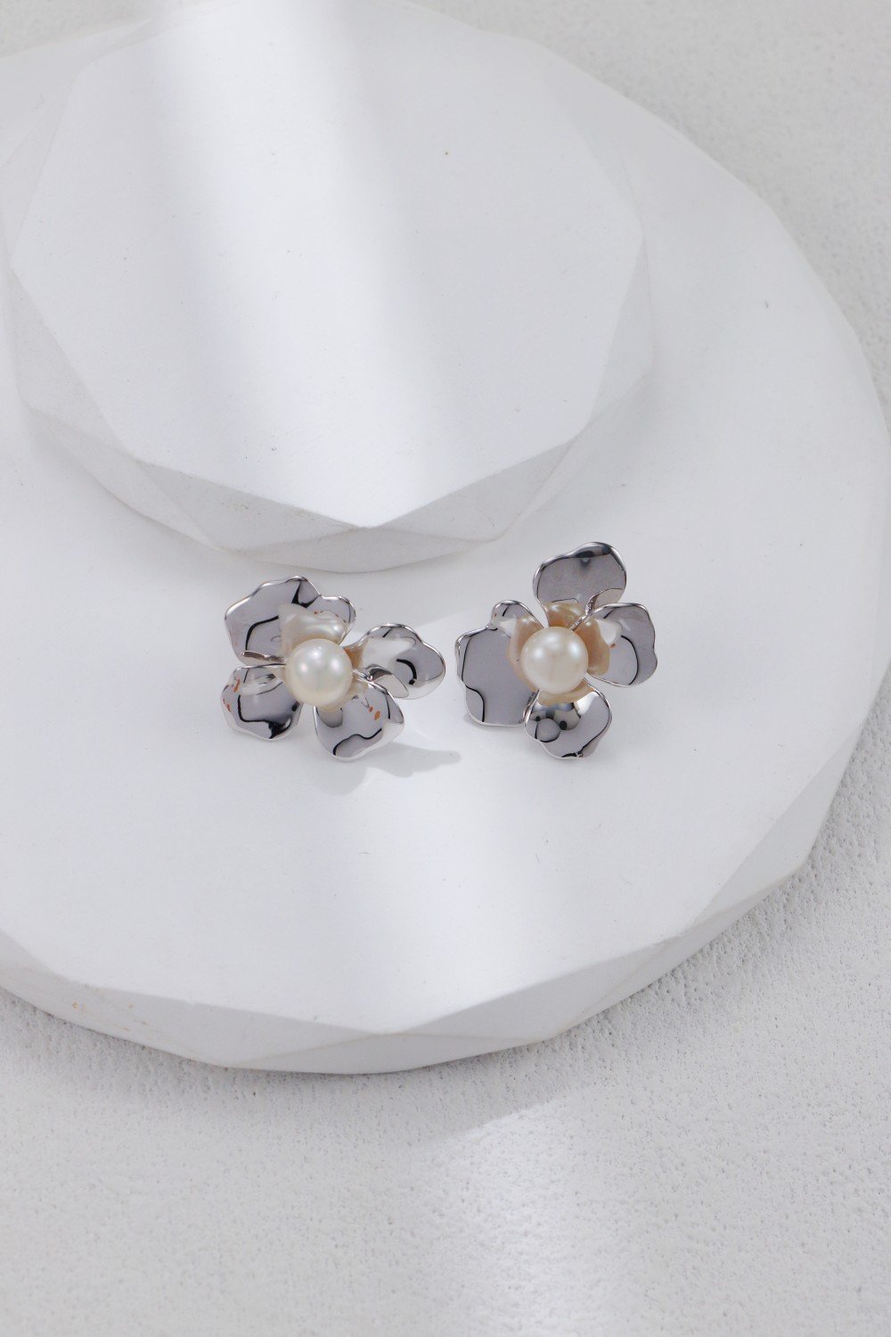 Petal Whispers Pearl Earrings | s925 Silver Floral Studs