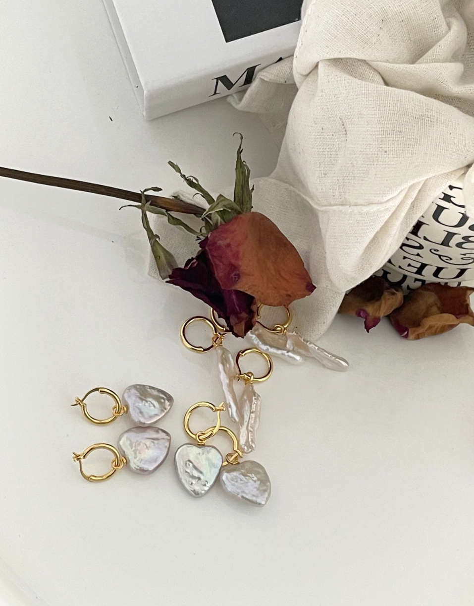 Delicately bold yet undeniably refined, the Baroque Heart Pearl Earrings celebrate the organic beauty of baroque pearls. Each heart-shaped pearl is one-of-a-kind, reflecting the beauty of imperfection, encased in a warm glow of 18K gold-plated sterling silver. Designed to frame your face with a soft, luminous radiance, these earrings are the perfect balance between sophistication and modern charm.Â